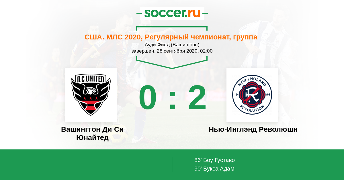 Протокол матча Вашингтон Ди Си Юнайтед против Нью-Инглэнд Революшн