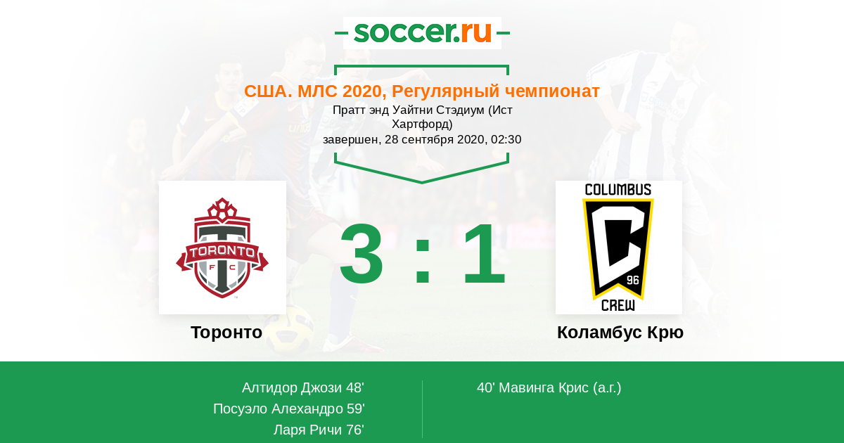 Протокол матча Торонто против Коламбус Крю