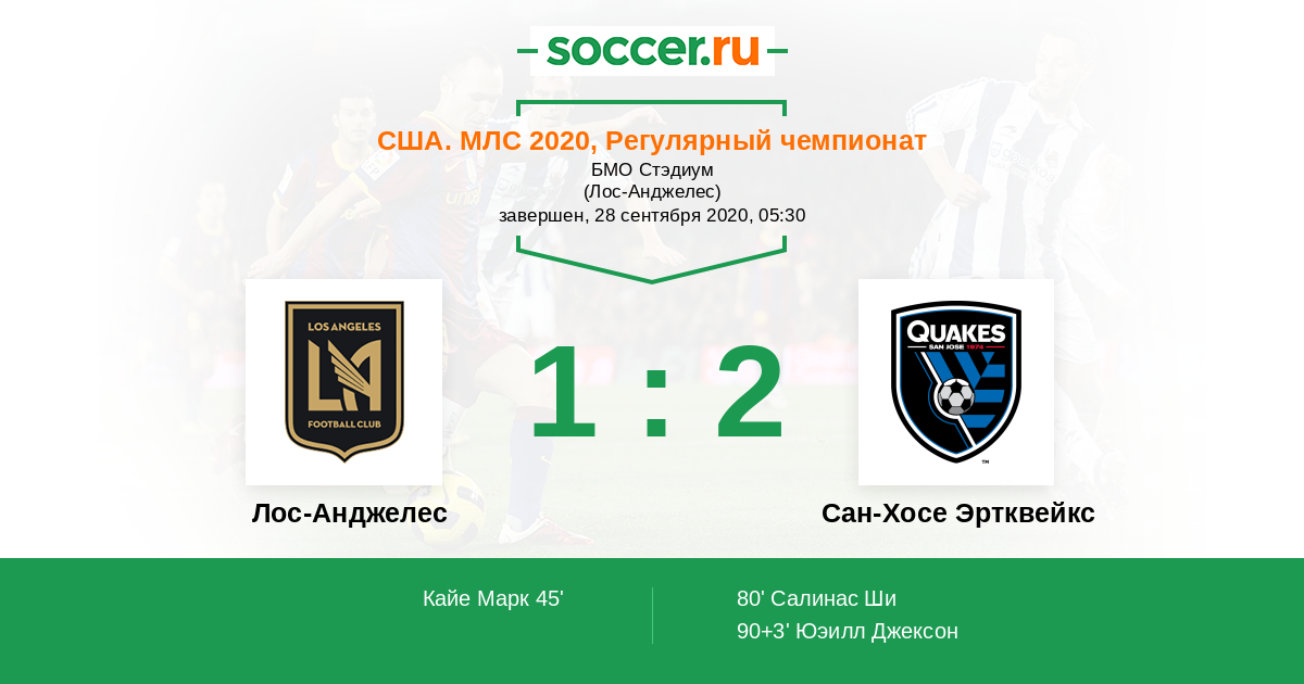 Протокол матча Лос-Анджелес против Сан-Хосе Эртквейкс