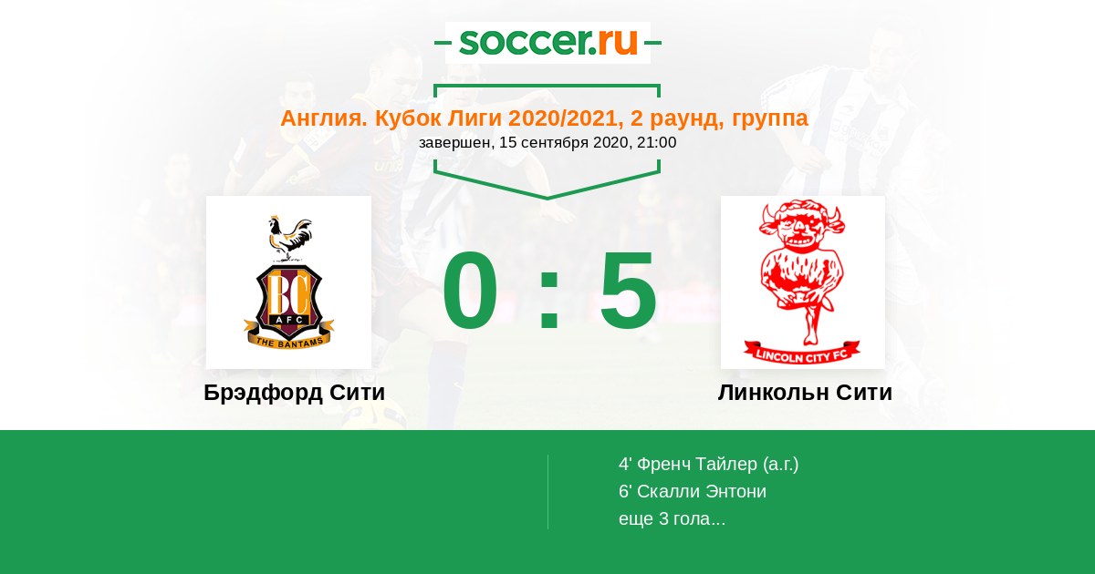 Протокол матча Брэдфорд Сити против Линкольн Сити