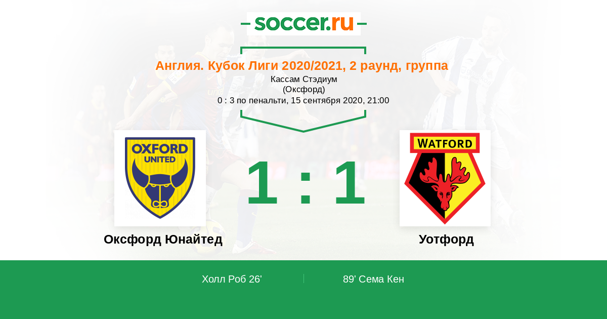 Протокол матча Оксфорд Юнайтед против Уотфорд