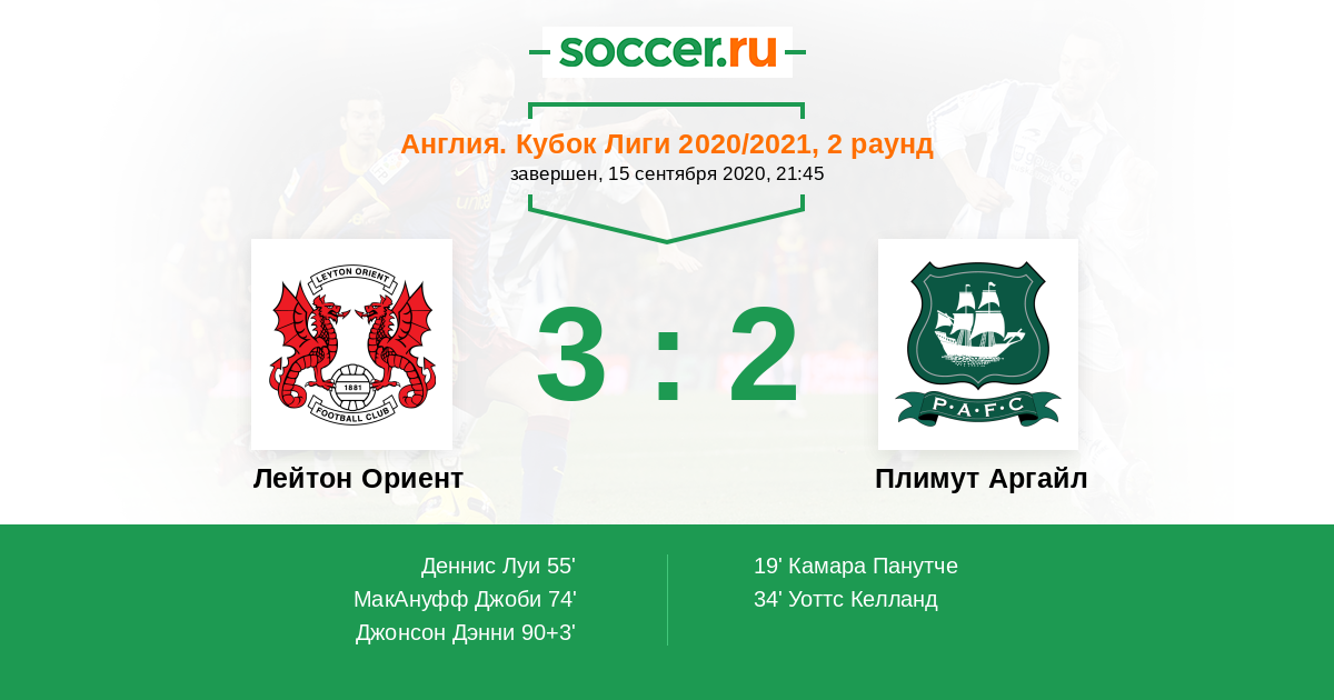 Протокол матча Лейтон Ориент против Плимут Аргайл