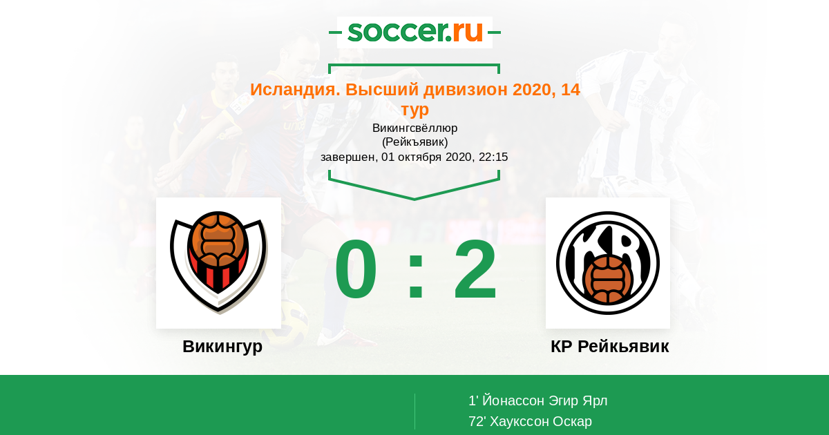 Протокол матча Викингур против КР Рейкьявик
