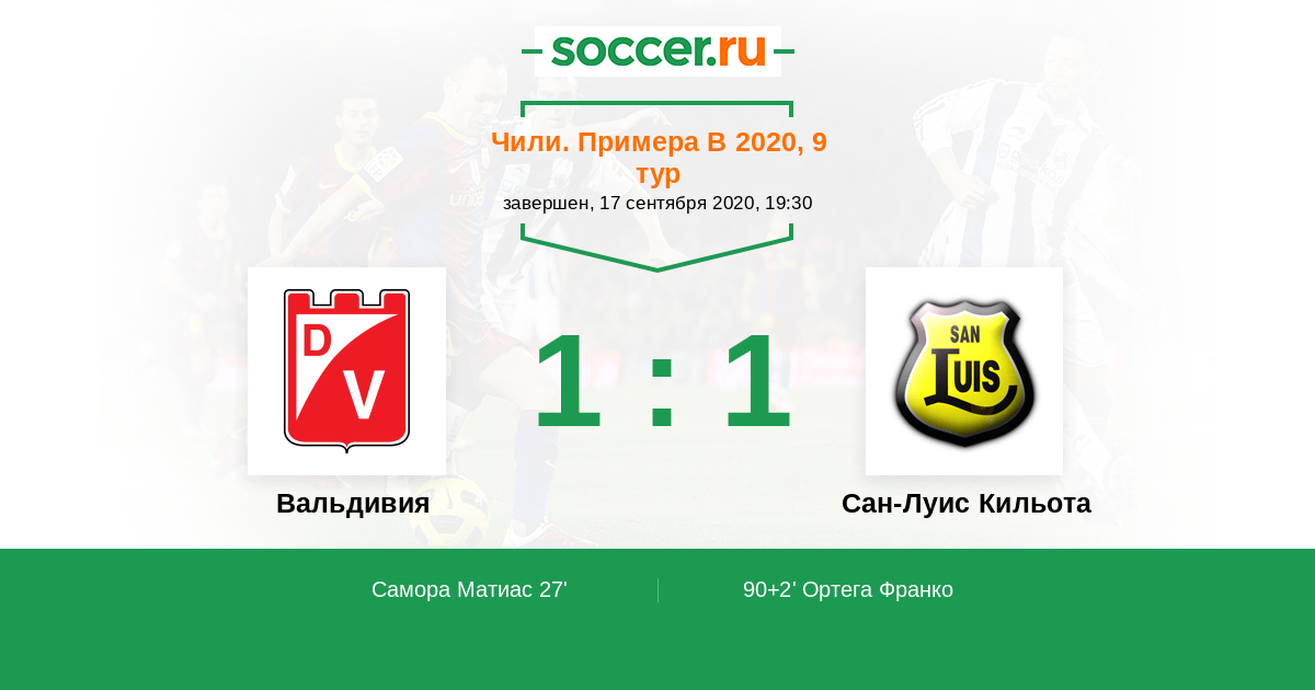 Протокол матча Вальдивия против Сан-Луис Кильота