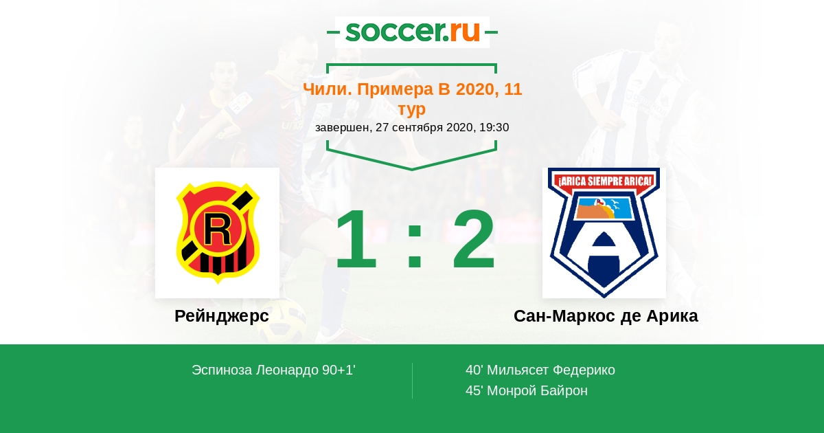 Протокол матча Рейнджерс против Сан-Маркос де Арика