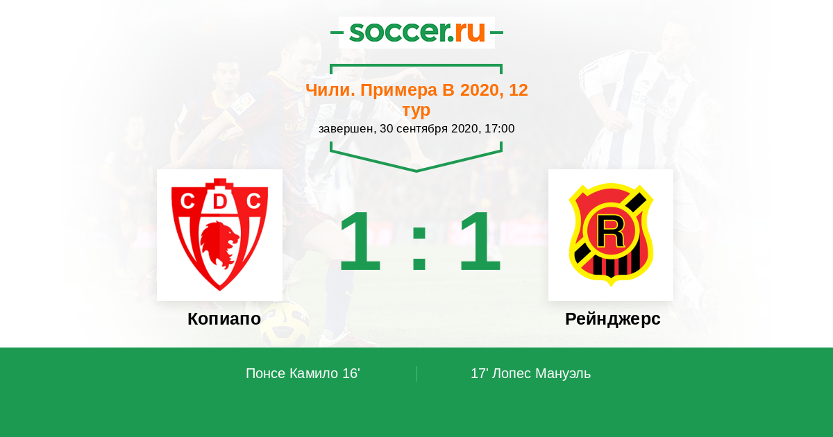 Протокол матча Копиапо против Рейнджерс