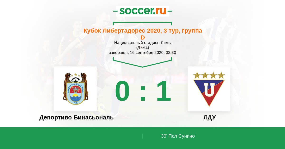 Протокол матча Депортиво Бинасьональ против ЛДУ