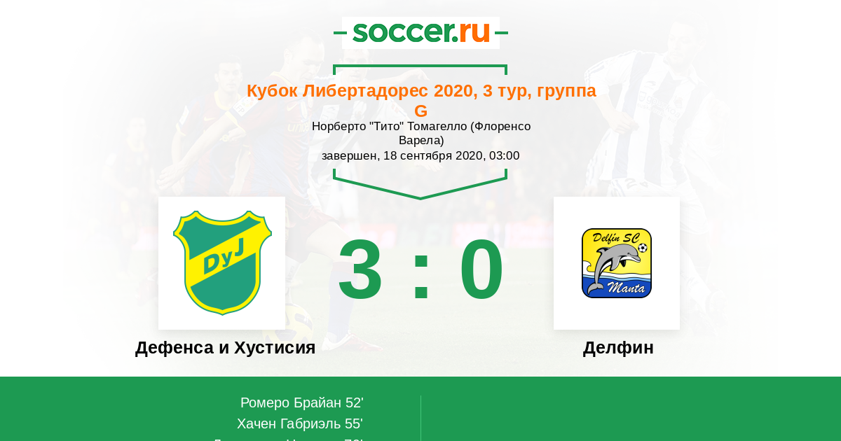 Протокол матча Дефенса и Хустисия против Делфин