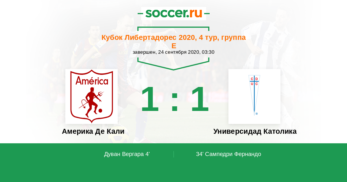 Протокол матча Америка Де Кали против Универсидад Католика