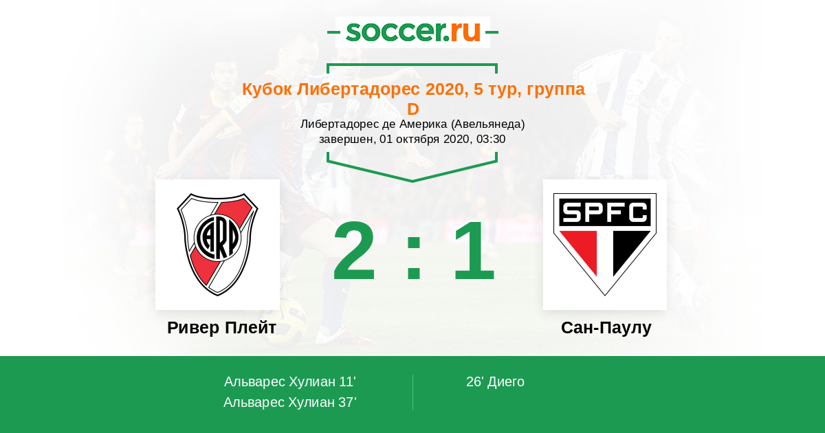 11' (1:0) Альварес Хулиан (9) (Де Ла Крус Николас (11))