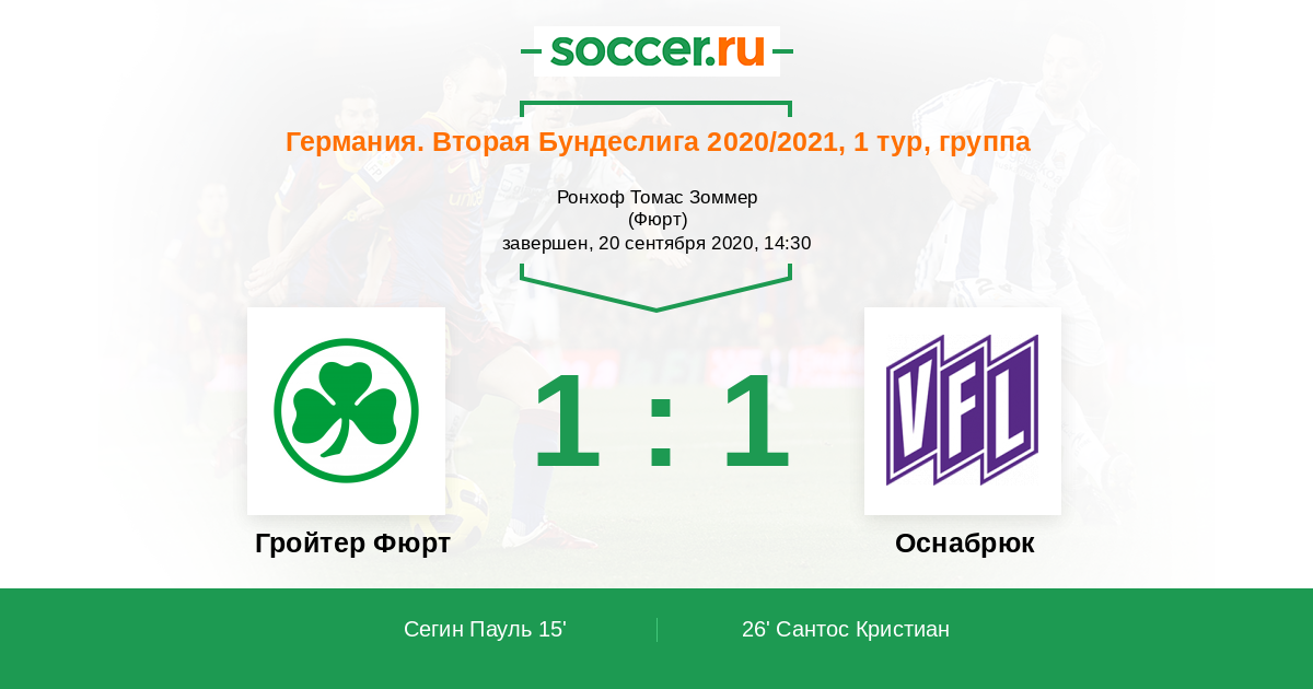 Протокол матча Гройтер Фюрт против Оснабрюк