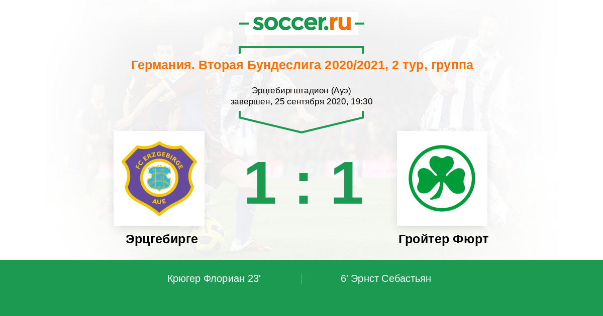 Протокол матча Эрцгебирге против Гройтер Фюрт