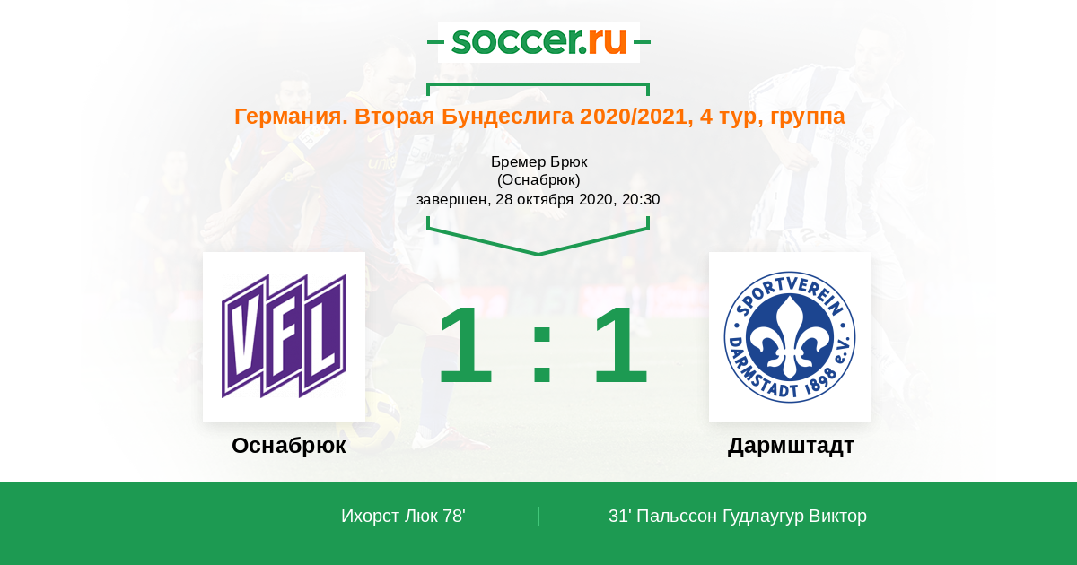 Протокол матча Оснабрюк против Дармштадт