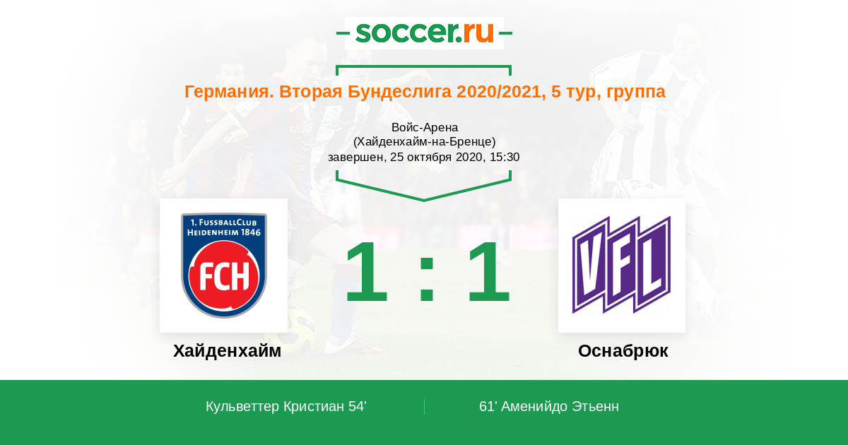 Протокол матча Хайденхайм против Оснабрюк
