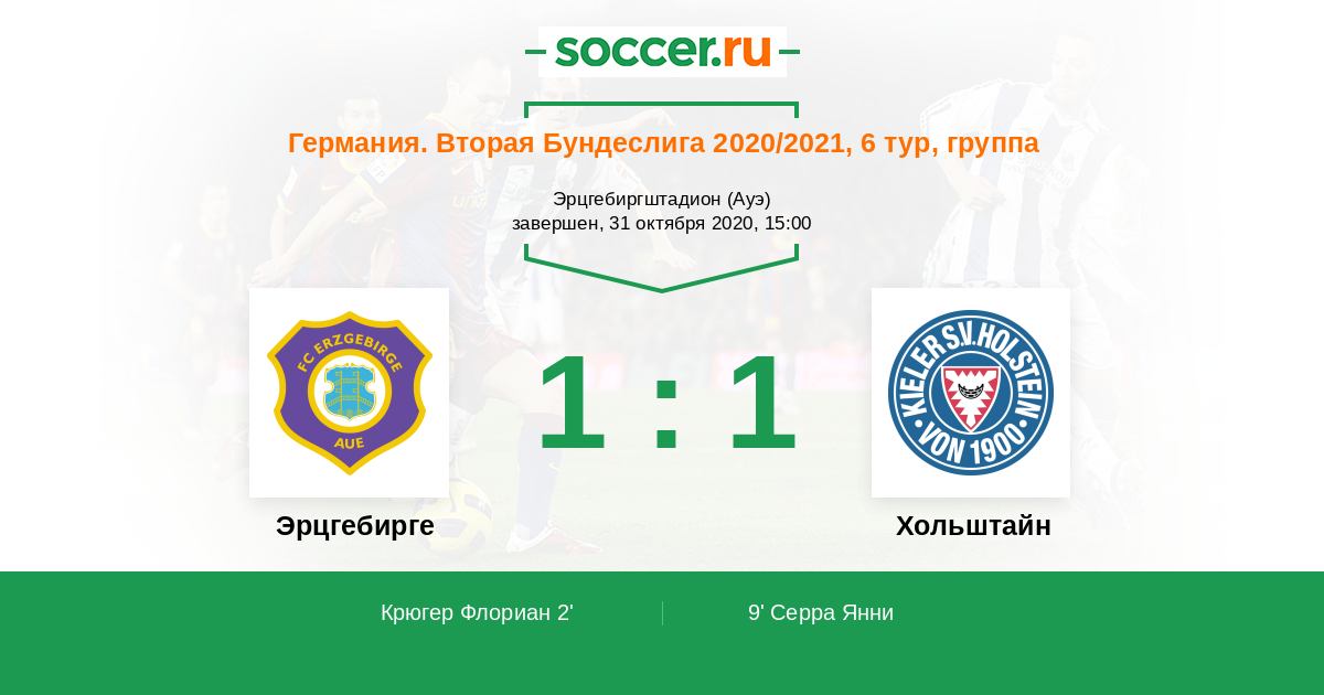 Протокол матча Эрцгебирге против Хольштайн