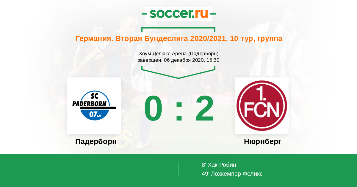 Протокол матча Падерборн против Нюрнберг