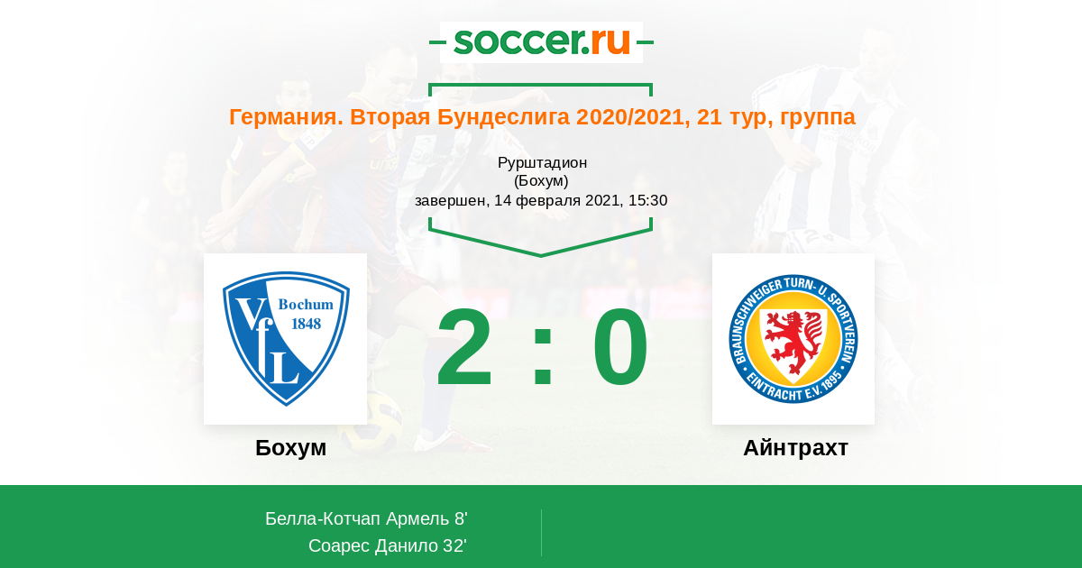 Протокол матча Бохум против Айнтрахт