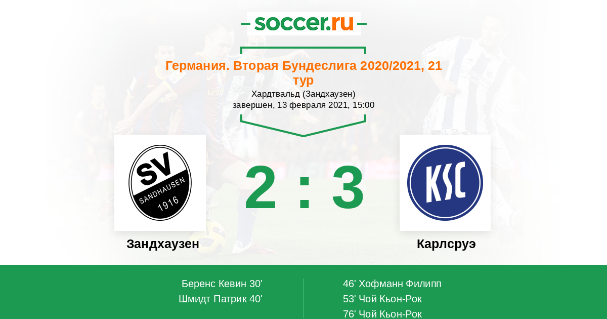 Протокол матча Зандхаузен против Карлсруэ