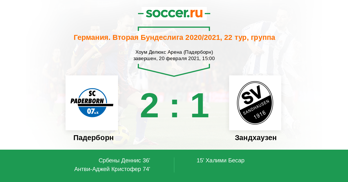 Протокол матча Падерборн против Зандхаузен