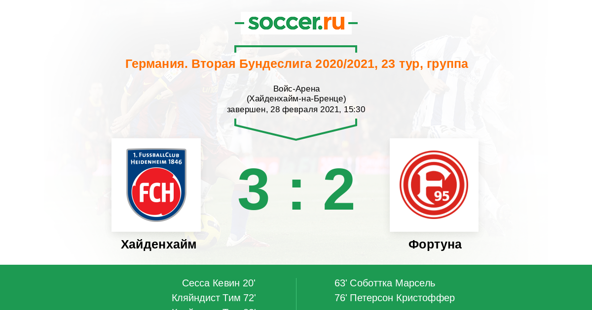 Протокол матча Хайденхайм против Фортуна