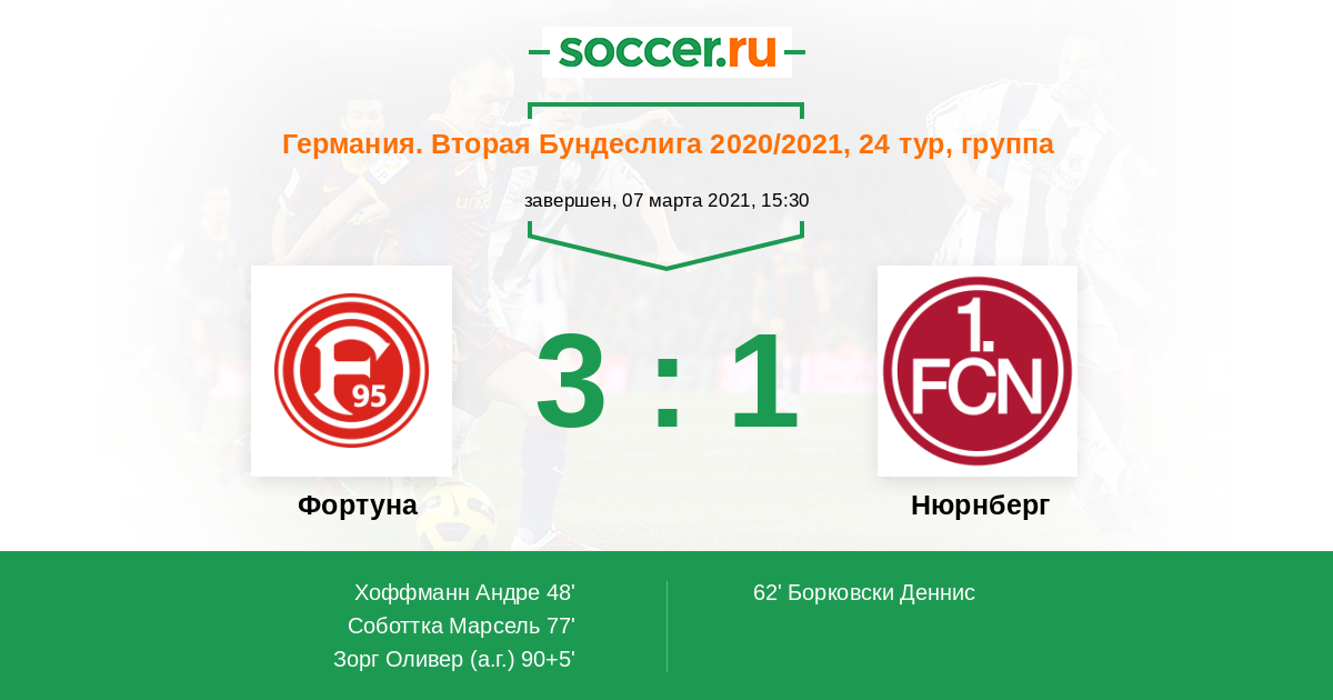 Протокол матча Фортуна против Нюрнберг