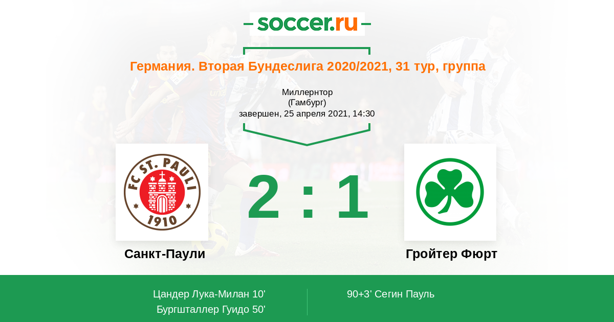 Протокол матча Санкт-Паули против Гройтер Фюрт