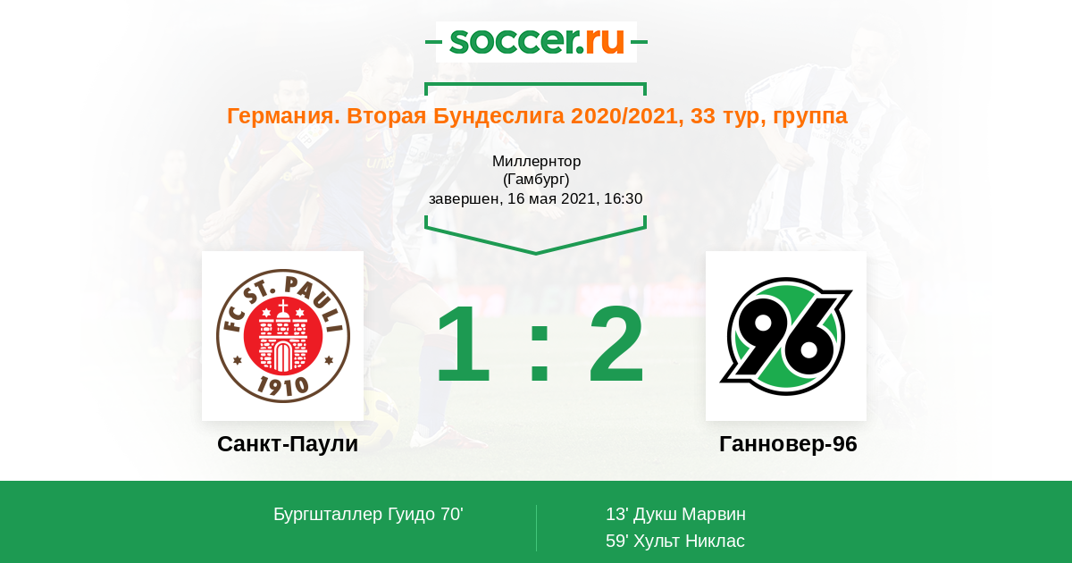 Протокол матча Санкт-Паули против Ганновер-96