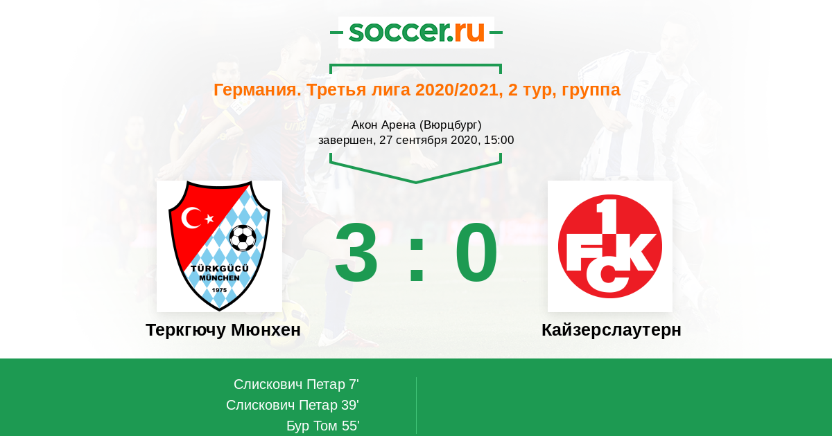 Протокол матча Теркгючу Мюнхен против Кайзерслаутерн