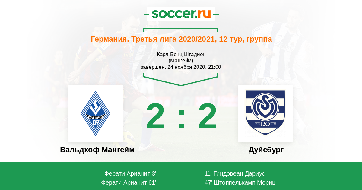 Протокол матча Вальдхоф Мангейм против Дуйсбург