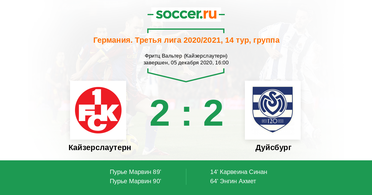 Протокол матча Кайзерслаутерн против Дуйсбург