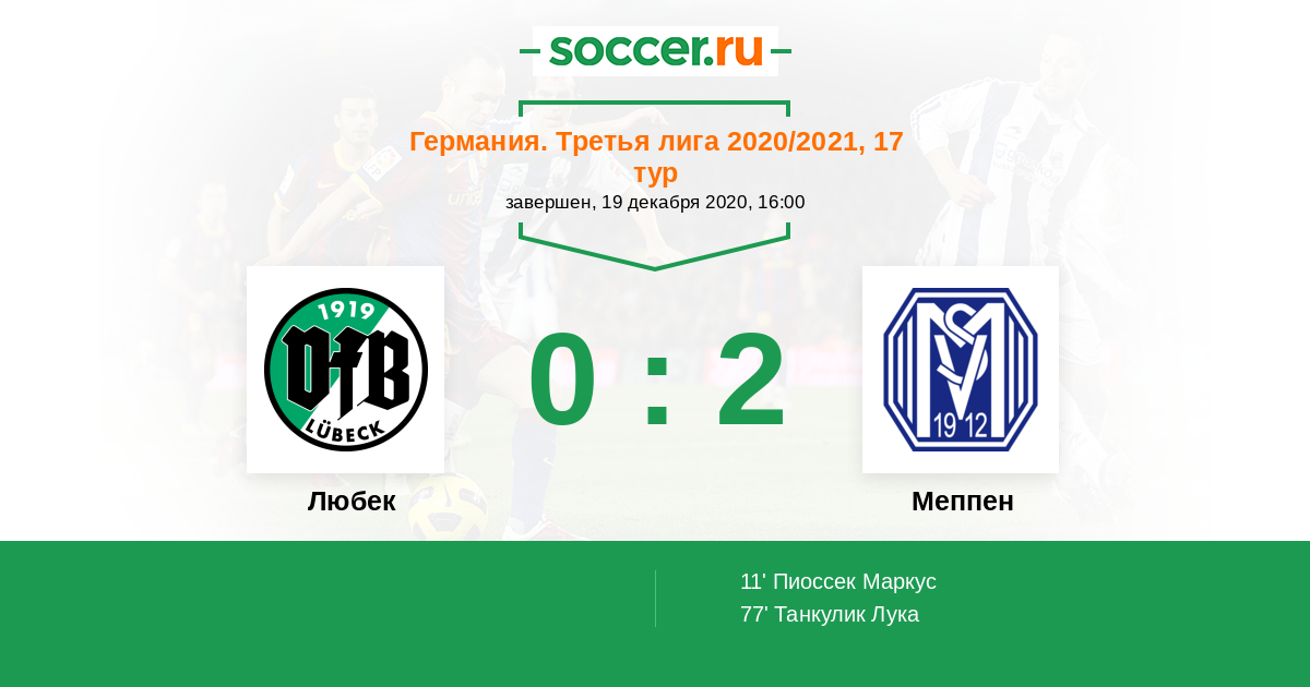 11' (0:1) Пиоссек Маркус (11) (Танкулик Лука (10))