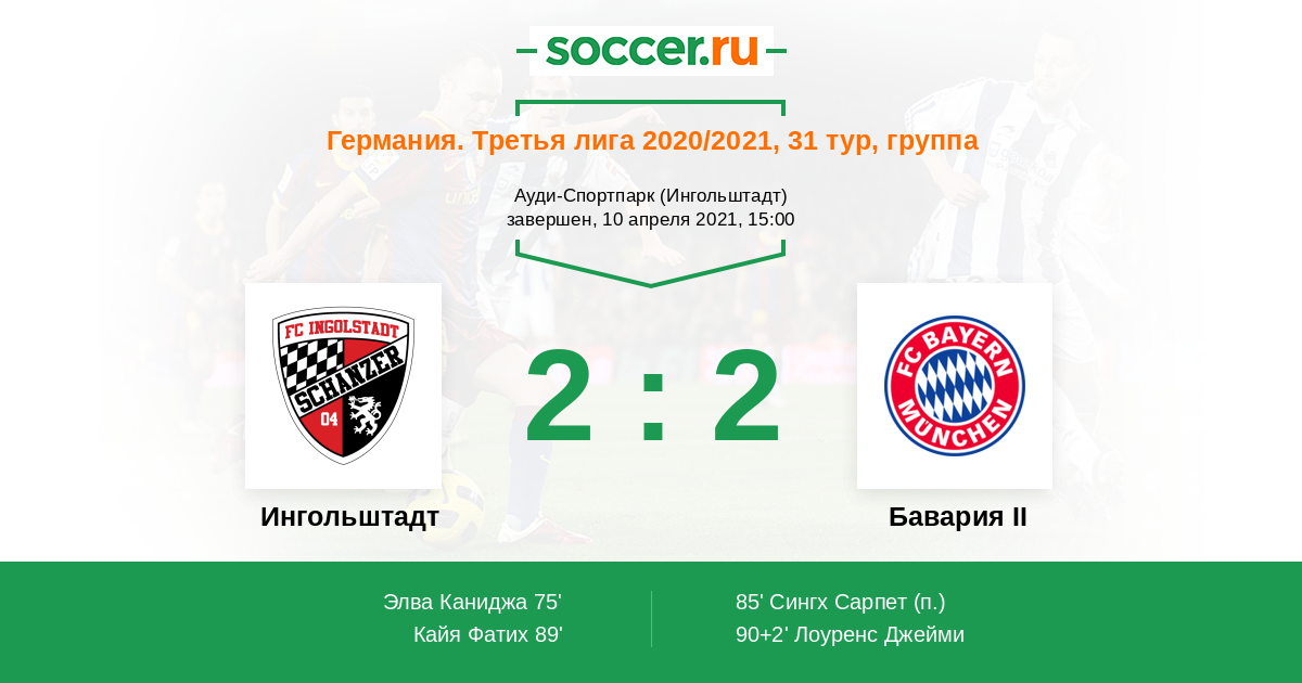 Протокол матча Ингольштадт против Бавария II