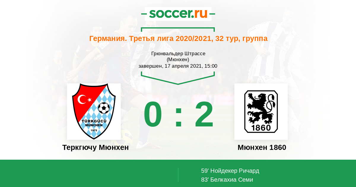 Протокол матча Теркгючу Мюнхен против Мюнхен 1860