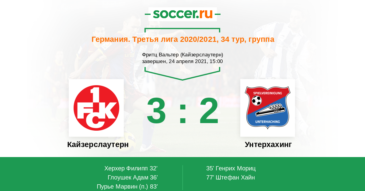 Протокол матча Кайзерслаутерн против Унтерхахинг
