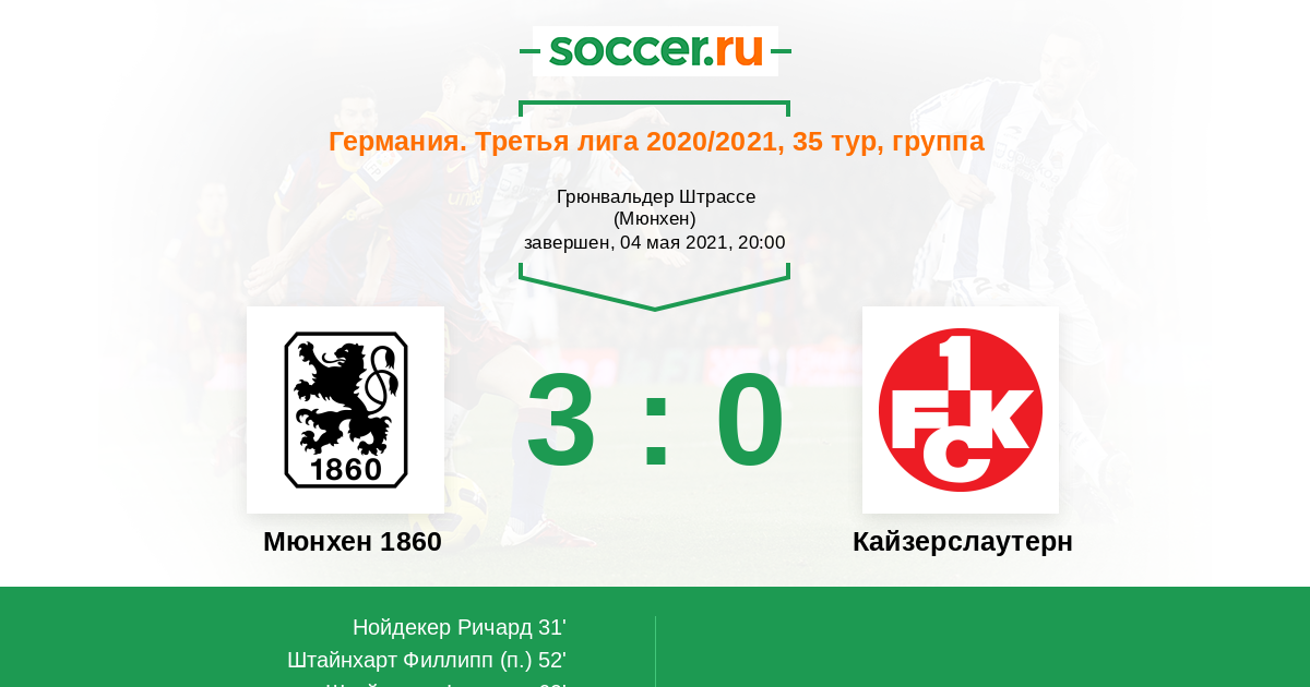 Протокол матча Мюнхен 1860 против Кайзерслаутерн