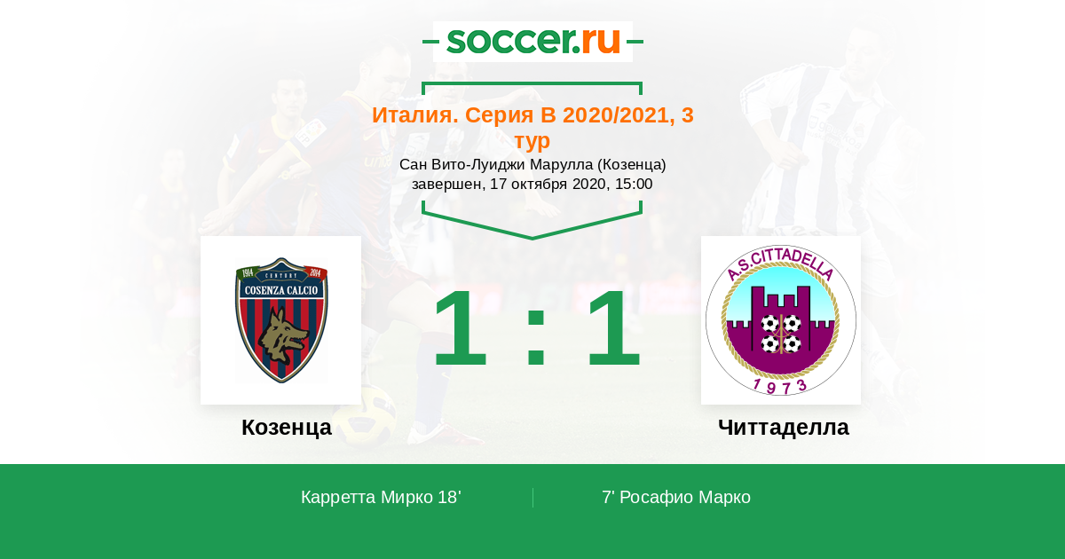 Протокол матча Козенца против Читтаделла
