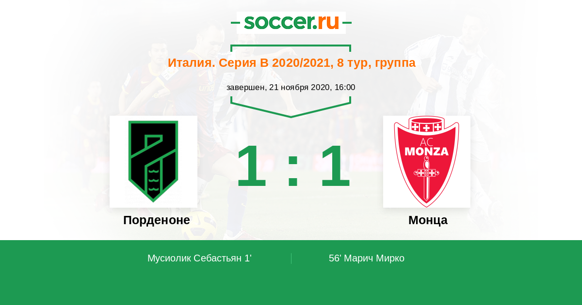 Протокол матча Порденоне против Монца
