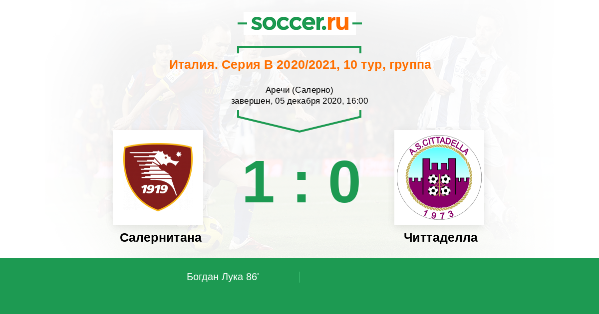 Протокол матча Салернитана против Читтаделла