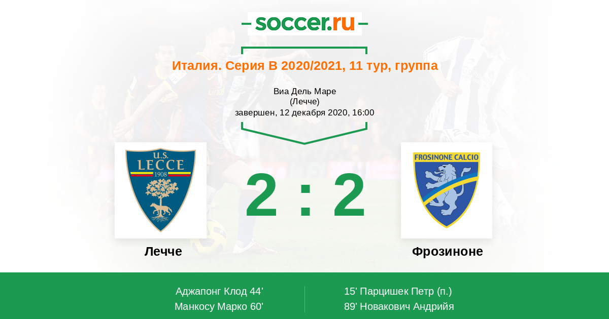 Протокол матча Лечче против Фрозиноне