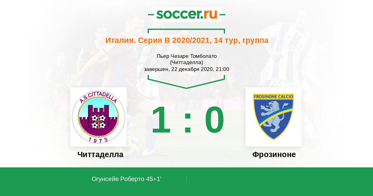 Протокол матча Читтаделла против Фрозиноне