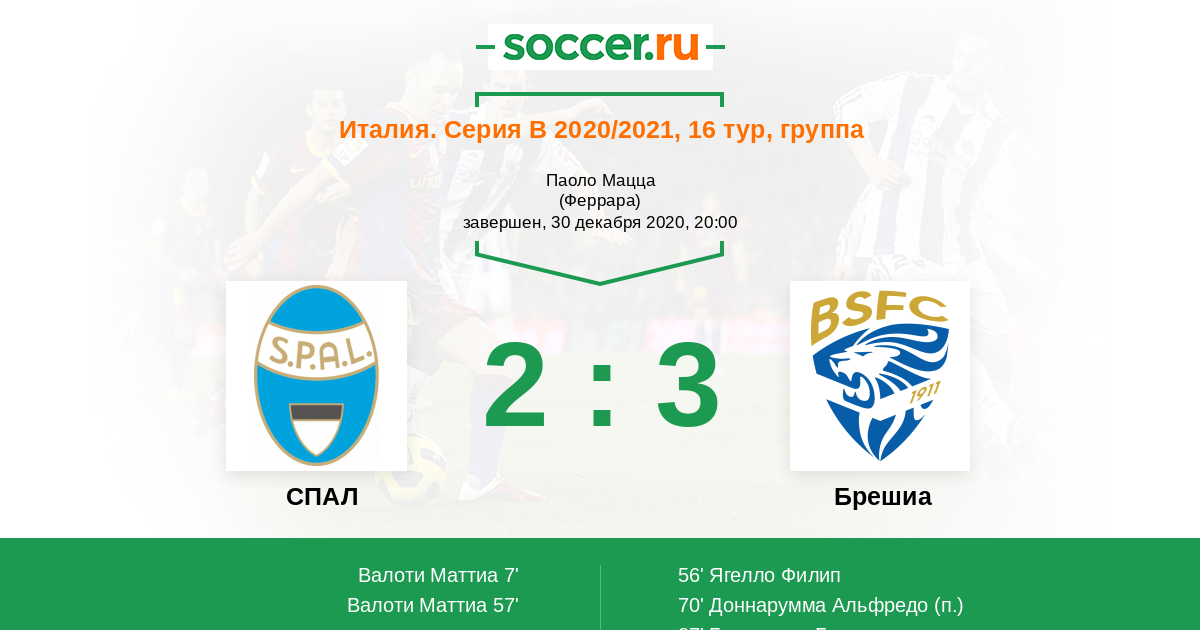 Протокол матча СПАЛ против Брешиа