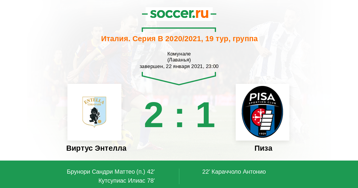 Протокол матча Виртус Энтелла против Пиза