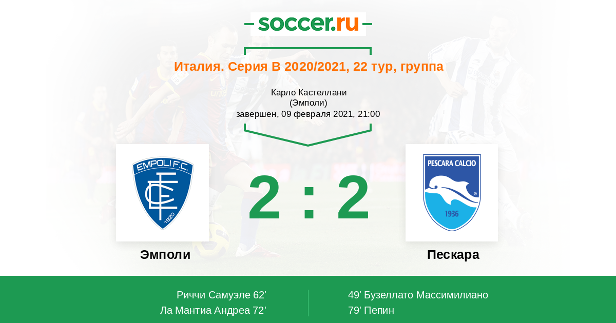 Протокол матча Эмполи против Пескара