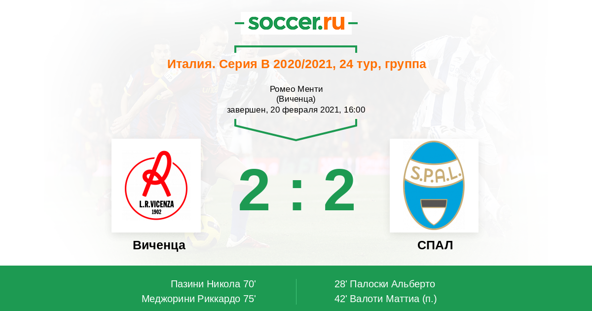 Протокол матча Виченца против СПАЛ