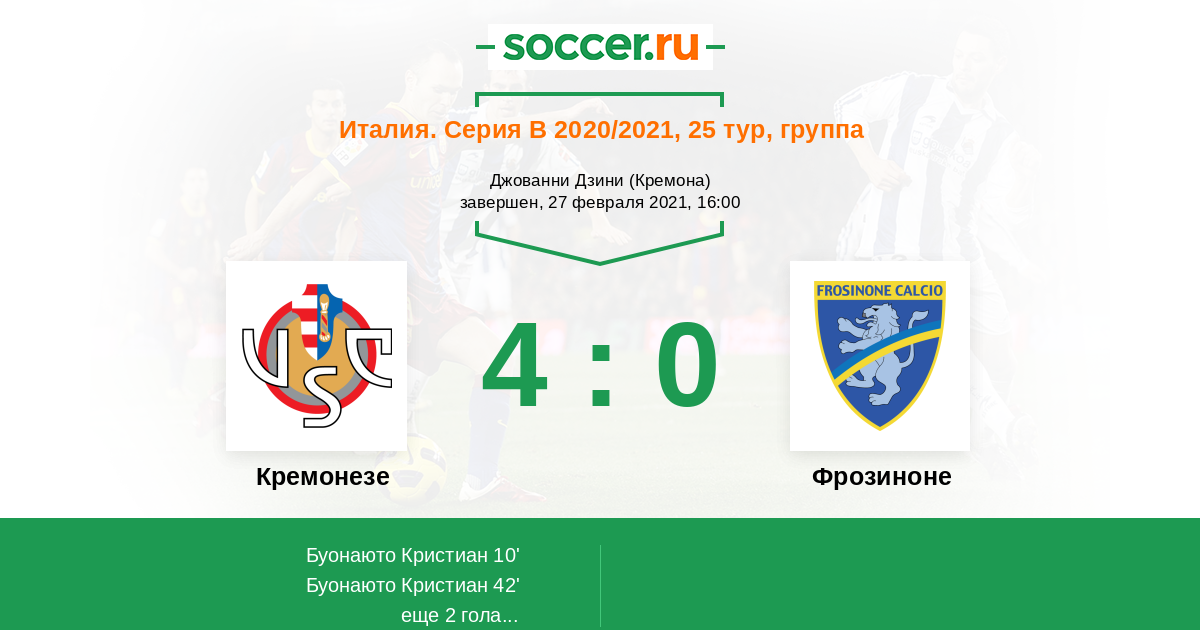 10' (1:0) Буонаюто Кристиан (10) (Гаэтано Джанлука (70))