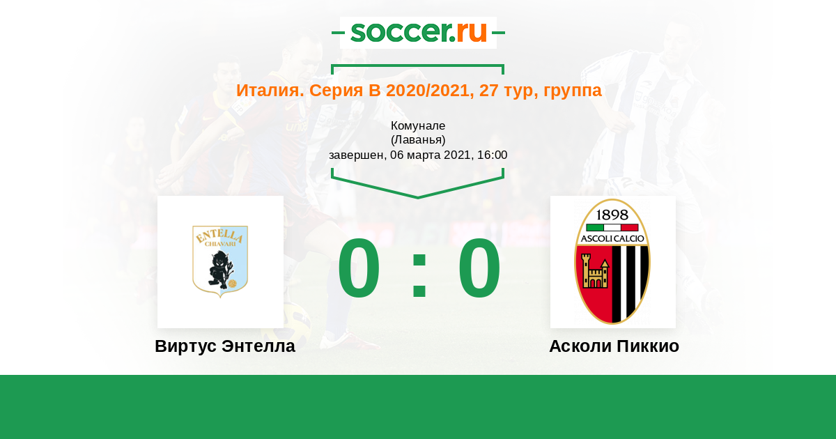 Протокол матча Виртус Энтелла против Асколи Пиккио