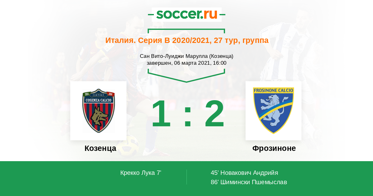 7' (1:0) Крекко Лука (26) (Тремолада Лука (21))