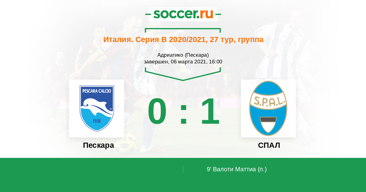 Протокол матча Пескара против СПАЛ