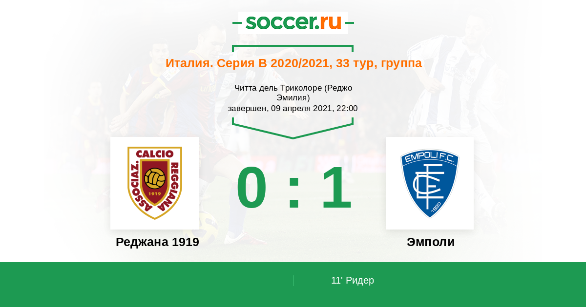 Протокол матча Реджана 1919 против Эмполи