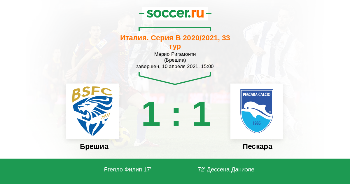 Протокол матча Брешиа против Пескара